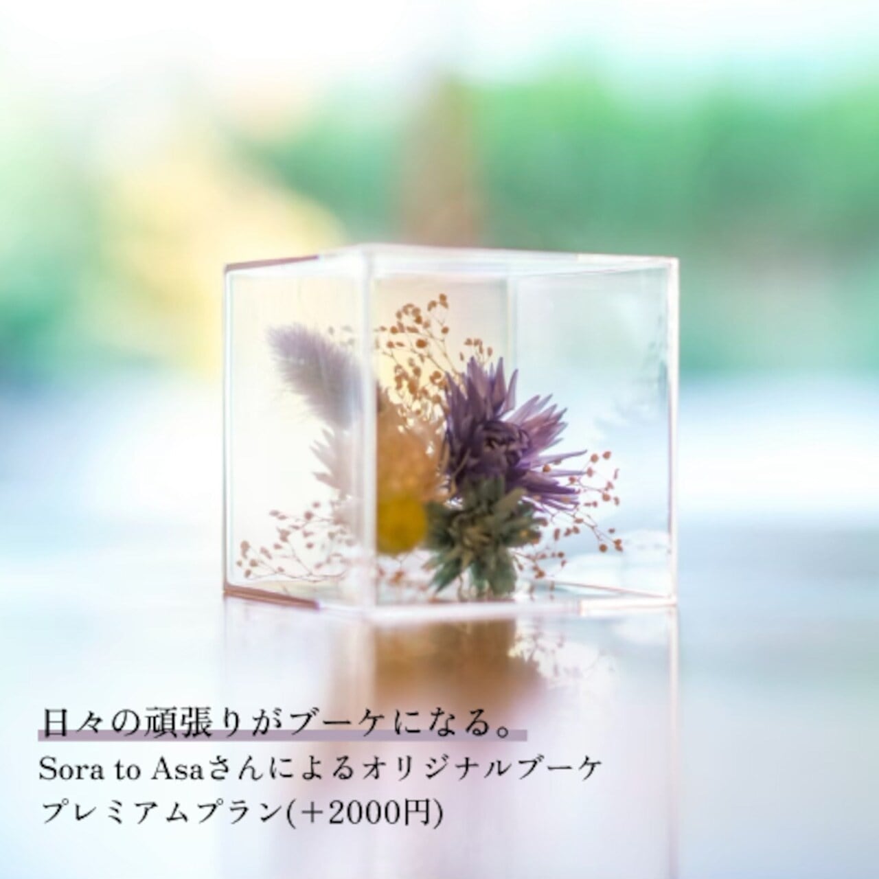 ※プレミアムプランでは、開催前に簡単なヒアリングを行い、お客様がこの期間で頑張ってきたことをもとに、「あなたの頑張りを束ねたブーケ」をお渡しします。
